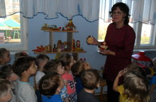 Мәктәпкәчә белем бирү планын тормышка ашыру кысаларында, иртә үсеш "Карапуз" төркемендә "Матрешка безгә кунакка килде" - дигән белем бирү эшчәнлеге оештырылды. Дәреснең максаты рус халык мәдәнияты белән кызыксыну тәрбияләү.