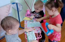 В рамках совместной образовательной деятельности детей раннего возраста, педагогов и родителей в группе кратковременного пребывания "Карапуз" была организована дидактическая игра "Поможем маме"