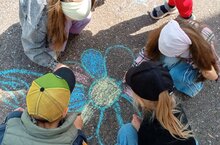 В группе "Золотая рыбка" сегодня тематический день, посвященный рисованию на асфальте. Рисовать цветными мелками не на бумаге, а на асфальте - это счастье для маленьких художников. Буквально несколько минут и асфальт заиграл яркими красками, радуя детей и взрослых. А тема рисования на асфальте "Наше яркое лето" - здесь и солнце,и цветы, и золотая рыбка, исполняющая желания, и классики для детских забав. Отличного вам отдыха, дети!