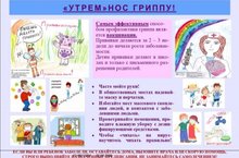 Уважаемые родители! Заботьтесь о здоровье своих детей, придерживаясь правил гигиены. Воспитывайте у детей навыки культуры здорового образа жизни, демонстрируя их на собственном примере. Не забывайте об активном отдыхе, закаливающих процедурах, занятиях спортом, рациональном питании, личной гигиене.Мы рекомендуем Вам изучить памятку по профилактике ОРВИ и гриппа "Как защититься от гриппа и не заболеть" (с ней вы можете ознакомиться в разделе "Доска объявлений")