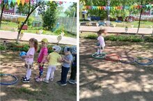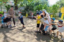 Особое внимание уделялось маленьким гостям праздника. Педагоги нашего детского сада подготовили для них разнообразные конкурсы, где каждый мог почувствовать себя настоящим победителем. Играли в веселые игры «Перенеси коромысло», «Кольцебросы», «Конные скачки», «С кочки на кочку» и другие. Родители также принимали активное участие в мероприятии. Дети весело провели время, праздник удался на славу!