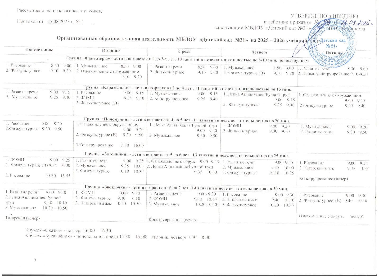 Расписание организованной образовательной деятельности/ Оештырылган белем бирү эшчәнлеге челтәре