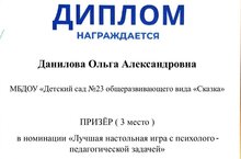 Наш педагог Данилова О.А. стала призером муниципального конкурса настольных и цифровых игр с психолого-педагогической задачей "Игры разума: психологическая игра как инструмент развития", поздравляем, от всей души! 27.11.2025