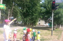 Экскурсия с воспитанниками I младшей группы на тему «Наблюдение за светофором». 24.06.2015