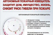 Автономный пожарный извещатель – это прибор, реагирующий на определенный уровень концентрации аэрозольных продуктов горения (дыма) веществ и материалов, в корпусе которого конструктивно объединены автономный источник питания и компоненты, необходимые для обнаружения пожара и непосредственного оповещения о нем. Если говорить простым языком – это прибор, работающий автономно от батарейки и подающий громкий звуковой сигнал при появлении дыма в помещении. Позаботьтесь о себе и своих близких.