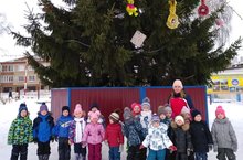 Наши воспитанники средней и старшей группы ходили на экскурсию к главной елки мельничной площади. Цель нашего похода познакомить дошкольников с тем, где и как жители поселка проводили новый год. Дети увидели красочное оформление большой елки, рассмотрели ее, провели беседу, поводили около нее хороводы, рассказывали стихи. Все остались, очень довольны от проведенного мероприятия.