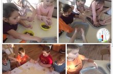 В рамках реализации проекта "Мы исследователи" в подготовительной группе продолжили исследования и с помощью песка нарисовали рисунки.