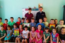 В целях закрепления знаний детей о правилах дорожного движения и безопасного поведения на улицах города, в подготовительной группе было проведено совместное мероприятие с сотрудником ГИБДД.