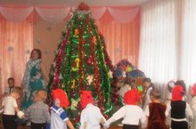 Воспитанники детского сада весело попрощались с празничной елкой до следующего новогоднего праздника.