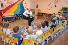 Младшую группу №1 посетил папа воспитанника Ильи А. - Артемьев Алексей Алексеевич. Он познакомил детей с музыкальными инструментами, такими как гитара, укулеле и губная гармоника. Исполнил на них знакомые всем детские песни, которые ребята с удовольствием подпевали. А под некоторые мотивы даже танцевали. Детям очень понравилось, и они пригласили гостя посетить их вновь.