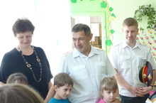Начальник управления Государственной инспекции безопасности дорожного движения Министерства внутренних дел по Республике Татарстан Рифкат Нургалиевич Минниханов и другие официальные лица посетили сегодня наш детский сад, где ознакомились с организацией работы воспитателей по обучению малышей правилам безопасного поведения на улицах и дорогах. Затем Рифкат Нургалиевич побывал в группах, где занимаются и отдыхают детишки, и пообщался с ними.