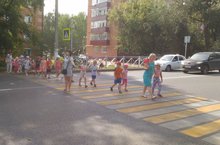 В рамках проведения акции «Внимание – дети!» в нашем саду прошла встреча с инспектором ГИБДД и целевая прогулка к пешеходному переходу, где дети вспомнили и закрепили правила безопасного движения на дорогах города.