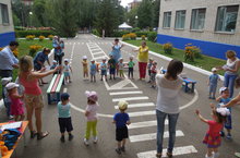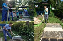 Воспитатели и родители совместными усилиями обновили на групповых участках дорожки здоровья.