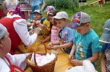 В рамках тематического проекта " К большому спорту через народные игры" дети старших групп были приглашены в "Летнюю мастерскую" по изготовлению атрибутов и пособий к русским народным играм, которые в последствии будут использоваться для проведения с детьми народных игр. Часть изготовленных атрибутов дети взяли с собой, чтобы играть с ними дома.