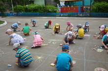 Рисуем на асфальте. Асфальтта рәсем ясау. 09.06.2015