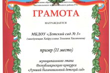 На основании годового плана Управление образования был проведен муниципальный конкурс "Лучший билингвальный детский сад". Наш детский сад стал призером муниципального этапа Республиканского конкурса "Лучший билингвальный детский сад".