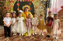 со своими осенними подарками. Яркая и веселая, она водила с ребятами хороводы, играла в игры, загадывала загадки и танцевала. И дети тоже приготовили для нее свои сюрпризы: они читали стихи, показали сценку, пели песни и танцевали -