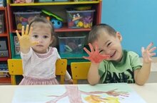 Коллективная работа по рисованию ладошками "Осеннее дерево" в первой младшей группе.