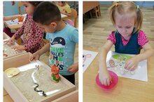 Тактиль сенсацияләре, яхшы мотор осталыгы, психик операцияләр балалар уенында үсә. Ком терапиясе технологиясе күп функциональ, ул диагностикалау, коррекцияләү һәм сөйләм һәм танып белү кызыксынуларын үстерү проблемаларын бер үк вакытта чишәргә мөмкинлек бирә. Сандугач - бала белән элемтәләр урнаштыру өчен бик яхшы арадашчы. Пыяла мәрмәр куллану - балалар өчен кызыклы булган традицион булмаган уку техникасы. Бу универсаль кулланма. Бу төрле төстәге пыяла ташлар җыелмасы, аның ярдәмендә сез төрле эшләрне башкара аласыз. Биремнәр 3 яшьлек балалар өчен. Класста уңайлы һәм кызыклы уен ситуациясе танып белү процессын кызыклы итә. Аның ярдәме белән белемгә өзлексез кызыксыну саклана.