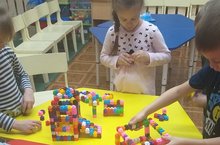 Для ребят группы "Непоседы", занятие конструированием – это не просто выполнение поставленной задачи, а интересная и увлекательная игра. Ведь ребенку хочется построить домик или башню из кубиков не просто так. А для того, чтобы там жила любимая куколка или лисенок. Дети готовы часами сидеть за изготовлением забавных поделок и игрушек. Творческое конструирование учит создавать красивые поделки, помогает ребенку приобрести необходимые навыки.