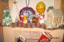 В нашем детском саду открылась «Мастерская деда Мороза». Дети совместно с родителями, с удовольствием изготовляют украшения в группы: фонарики, разноцветные цепочки, рисуют Дедов Морозов и Снеговиков, мастерят открытки для поздравления. Активно принимают участие в оформлении группы к празднику. Дети средней группы (воспитатель Хамидуллина Л.Г.) позвонили Деду Морозу по телефону, спели с ним песенку, ответили ему на вопрос, как они вели себя весь год и попросили в подарок маленькую ёлочку. И сколько было восторга, когда на следующий день им была подарена ёлочка! Они поблагодарили дедушку Мороза и украсили зимнюю красавицу, зажгли на ней разноцветные огоньки. Работы в «мастерских» продолжаются, и будет ещё много интересных задумок и новых поделок.