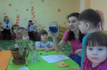 В рамках проведения взаимопосещений педагогв НОД, воспитателем Губайдуллиной Л.П. было проведено занятие по нетрадиционной технике рисования (ватными палочками) с детьми раннего возраста. Малыши аккуратно рисовали иголочки ежику, чтобы защитить его от лисы, которая хотела полакомиться маленьким зверьком. В заключении занятия дети устроили выставку рисунков и порадовалитсь результатам своего труда.