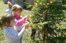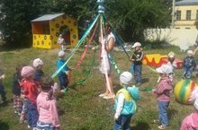 По инициативе детей старшей группы, в рамках проводимого творческого конкурса в ДОУ «Лето- веселая пора!», воспитанники решили повеселить свою елочку, которая растет на участке детского сада, так как летом про нее забывают. Дети постарались и изготовили украшения из цветной бумаги, которые украсили зеленую красавицу!
