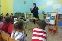 В подготовительной группе №7 настоящий урок труда провел папа одногоиз воспитанников А.Г.Хурасеев. Он познакомил ребят с различными столярными инструментами и работой токарного станка по дереву. Соблюдая все правила техники безопасности, каждый из ребят сам попробовал работать на токарном станке, обрабатывая деревянную деталь. А затем все организованно принялись трудиться над изготовлением деревянных вешалок.