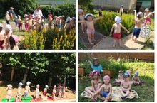 У ребят группы №5 сегодня настоящее летнее путешествие. Вместе с воспитателем И.Б.Городищенской они отправились в гости на пасеку. Это совсем не опасно, потому что пасека создана руками наших воспитателей. Ульи почти как настоящие, зато пчелки не кусаются. Ребята узнали много интересного о профессии пасечника и о трудолюбивых насекомых - пчелах. А потом наши ребята и сами на славу потрудились на приусадебном участке.