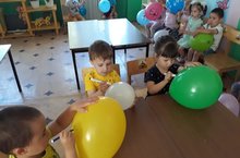 Сегодня 16.07 2019г. в младшей группе прошел "Праздник Воздушных шаров". Весь день был посвящен воздушным шарикам, которые очень любят все дети. Тематический день начался еще утром в группе. Дети с большим удовольствием выполняли увлекательные задания - рисовали шарики на бумаге и делали себе доброго друга из шарика с веселым лицом. Затем праздник продолжился на участке детского сада подвижными играми с шарами.