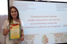 По итогам муниципального конкурса профессионального мастерства среди русскоязычных педагогов "Я разговариваю и работаю на татарском - 2020" воспитатель МБДОУ "Детский сад №26" Андина Алена Сергеевна стала победителем.