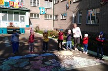 Среди воспитанников старших и подготовительной к школе групп состоялся конкурс рисунков на асфальте