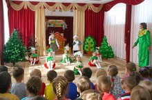 Театрализованную постановку "Коза и Баран", подготовленную силами воспитанников подготовительных групп "Непоседы и "Пчелки", сегодня посмотрели все воспитанники детского сада и их родители.