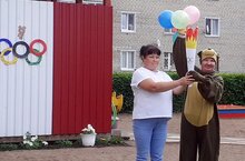 В детском саду прошли "Олимпийские игры". Ребята участвовали в спортивных эстафетах. Мишка, принес ребятам Олимпийский факел.