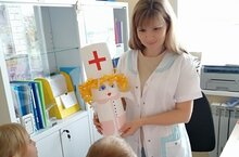 Ребята, в детском саду вспомнили как важна профессия врача. Сами побывали в роли медицинского работника в игровой деятельности, а также сделали талисман медицинской сестре детского сада, Наталье Михайловне.