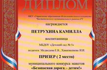 Семья воспитанницы Петрухинной Камиллы, стали призёрами муниципального конкурса макетов по ПДД "Безопасная дорога -детям!"
