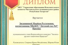 Наша воспитанница Заганшина М., стала призером муниципального этапа Всероссийского конкурса "Эколята- друзья и защитники природы!"