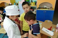 Ребята подготовительной группы "Подсолнушек", играя в сюжетно-ролевую игру "Медицинский центр", знакомятся с профессиями фармацевта, педиатора, окулиста, отоларинголога, пополняют словарный запас, развивают игровой диалог и игровое взаимодействие.