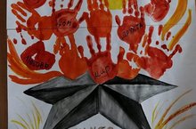 Ребята младшей группы "Семицветик" выполнили коллективную работу "Вечный Огонь" необычным способом-отпечатком ладошки.