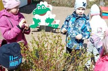 На прогулке ребята дежурной группы, наблюдают за облаками, за распустившимися почками, насекомыми. Играют в веселые подвижные, спортивные игры, развивающие основные движение, снимающие умственное напряжение, воспитывающие моральные качества.