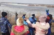 Ребята отправились на прогулку на берег реки Камы. Педагоги с ребятами поговорили о том, что нельзя пренебрегать правилами безопасности на воде в весенний период.