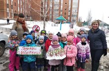 В старшей группе "Незабудка", провели природоохранную акцию "Береги подснежник". Ребята с педагогами изготовили своими руками подснежники и подарили их жителям города с призывом беречь первоцветы.