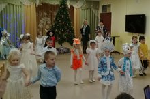 В подготовительной группе ребята побывали на новогоднем балу у Снежной королевы! Ребят порадовали своим танцем веселые пингвины, зачарованно наблюдали за танцем полярных звезд, а Емеля показал сказку из волшебного решета "Руковичка". Итогом мероприятия было появление Деда Мороза с подарками!