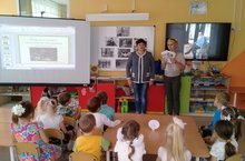В нашем детскому саду прошел "День дорожной безопасности!" К нам в гости приехали начальник отделения ГИБДД Рафис Гарифуллин, инспектор по пропаганде безопасности дорожного движения Владислав Воляков, руководитель Чистопольского отделения ГБУ «Безопасность дорожного движения» Светлана Сидорова, а также родители. Воспитатели с ребятами, провели мероприятие по дорожной безопасности, а Рафис Габдуллович вручил заведующей детским садом ГА. Сафиной книги, развивающие игры для обучения мальчишек и девчонок ПДД, жилеты со светоотражающими элементами.