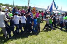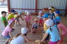 По традиции, в ДОУ, отметили татарский национальный праздник Сабантуй с играми и весельем на участке ДОУ! Ребята, весело исполняли народные песни «Сабантуйга барабыз», «Әйлән-бәйлән» и проникновенно читали стихи на русском и татарском языке о празднике плуга! Все желающие ребята соревновались в быстроте, выносливости и смекалке! Дружно дети перетягивали канат, бегали в мешках, носили воду в вёдрах, участвовали в бое с мешками, в импровизированных «скачках на лошадях», соревновались, кто быстрее донесёт яйцо в ложке, разбивали горшки и боролись на звание лучшего Батыра, которым стал Сибгатуллин Р. из группы «Семицветик»!