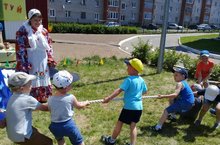 Педагоги нашего детского сада, приняли участие в организации игр для «детского сабантуя» таких как бег в мешках, бег с яйцом в ложке, битье горшков, перетягивание каната, бег с ведрами, а также ребята с родителями могли посетить выставки различных национальных блюд, и народных художественных промыслов.
