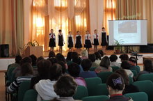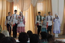 Ø 13.35 – 13. 50 “Театр яктылыкка, нурга илтә”. К.Тинчуринның “Сүнгән йолдызлар” драмасыннан күренеш, Гыйльманова С.М., югары кв.категорияле татар теле һәм әдәбияты укытучысы, 8 а сыйныф укучылары (актлар залы)