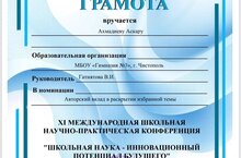 13 марта 2026 г. в г. Набережные Челны прошла XI Международная школьная научно-практическая конференция «Школьная наука – инновационный потенциал будущего». Дипломом 1 степени награждена Жекина Виктория (руководитель Муратова Н.А.), грамотой в номинации «За актуальность выбранной темы» награждена