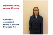 Поздравляем призера регионального этапа всероссийской олимпиады школьников по физической культуре, ученицу 9 класса и её учителя Пушкарева А.С. Так держать!