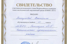 Хлопунова Е. стала участником регионального этапа Всероссийского конкурса юных исследователей окружающей среды (ЮИОС-2015).